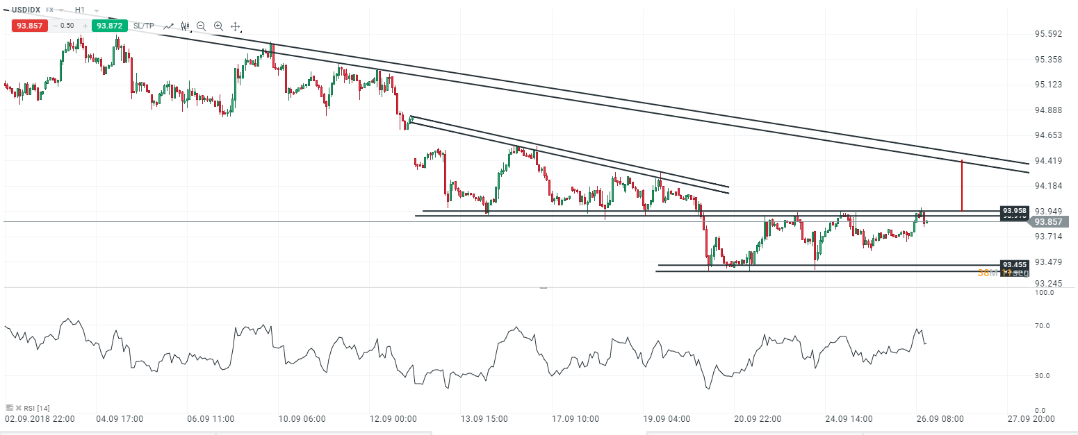 Por el lado del índice del Dólar, se sitúa a esta hora en la parte más alta del rango lateral que viene guiando los precios durante las última sesiones. La probable subida de tipos en Estados Unidos y las posteriores declaraciones pueden dar lugar a la ruptura de este canal lateral, que, en caso de producirse a favor del Dólar, tendría como objetivo las inmediaciones de los 94.4.