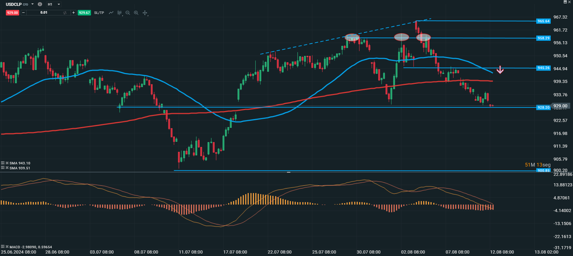 En cuanto a la situación en Chile, el dólar cerró la semana pasada levemente por encima de los $931 y hoy se encuentra cotizando en el premercado por debajo de los $930. Esta tendencia bajista del tipo de cambio se debe, entre otros factores, al debilitamiento generalizado del dólar internacional y al aumento en la cotización del cobre. Si la tendencia actual se mantiene, no sería sorprendente ver al dólar caer hacia la zona de los $915 antes de buscar el suelo de los $900. Este escenario se desarrolla en la antesala de la publicación del Producto Interno Bruto (PIB) en Chile, que se dará a conocer el próximo lunes.