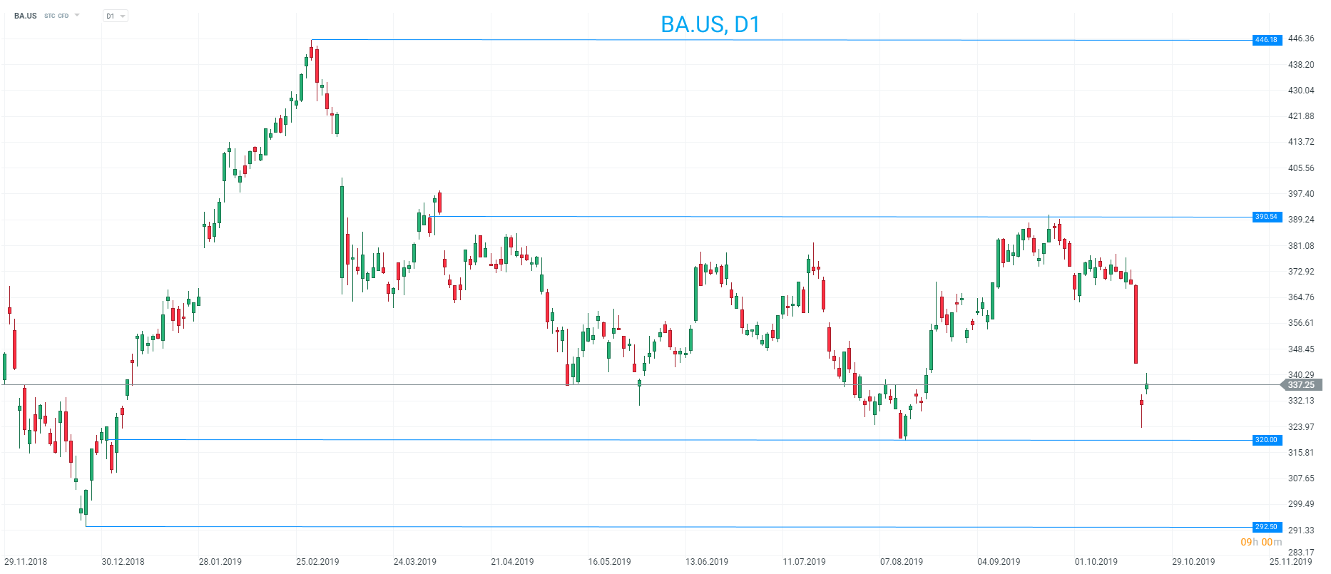 Los inversores de Boeing han tenido un año difícil, pero se espera que las acciones comiencen más altas esta tarde con la esperanza de un regreso al servicio por los problemas de los aviones 737 MAX este trimestre. Aparentemente, esto ha superado un conjunto decepcionante de resultados, ya que tanto las ganancias como los ingresos cayeron en el tercer trimestre. Fuente: xStation