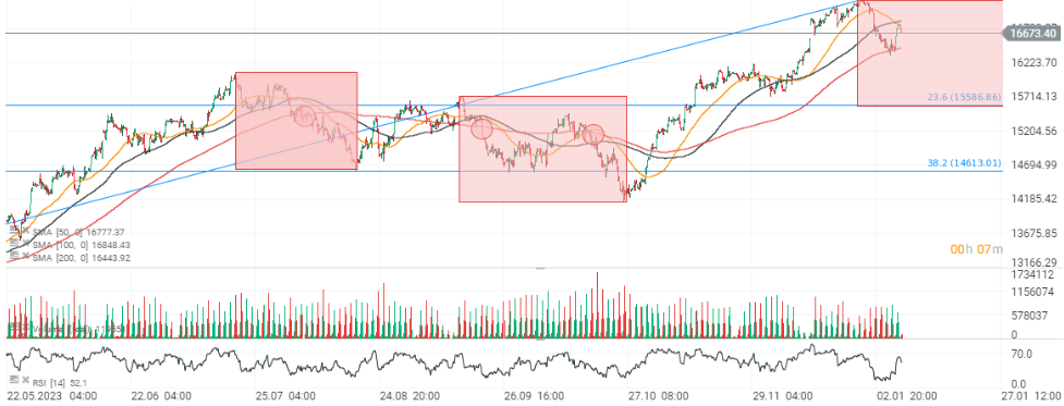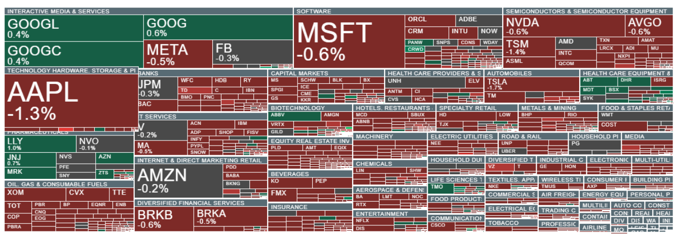 El sector bursátil estadounidense está experimentando caídas hoy. Por el contrario, los beneficios los encontramos en el sector médico/farmacéutico, donde el sentimiento para 2023 era muy pesimista. Merck (MRK.US), Johnson&Johnson (JNJ.US) y Eli Lilly (LLY.US) cotizan al alza.