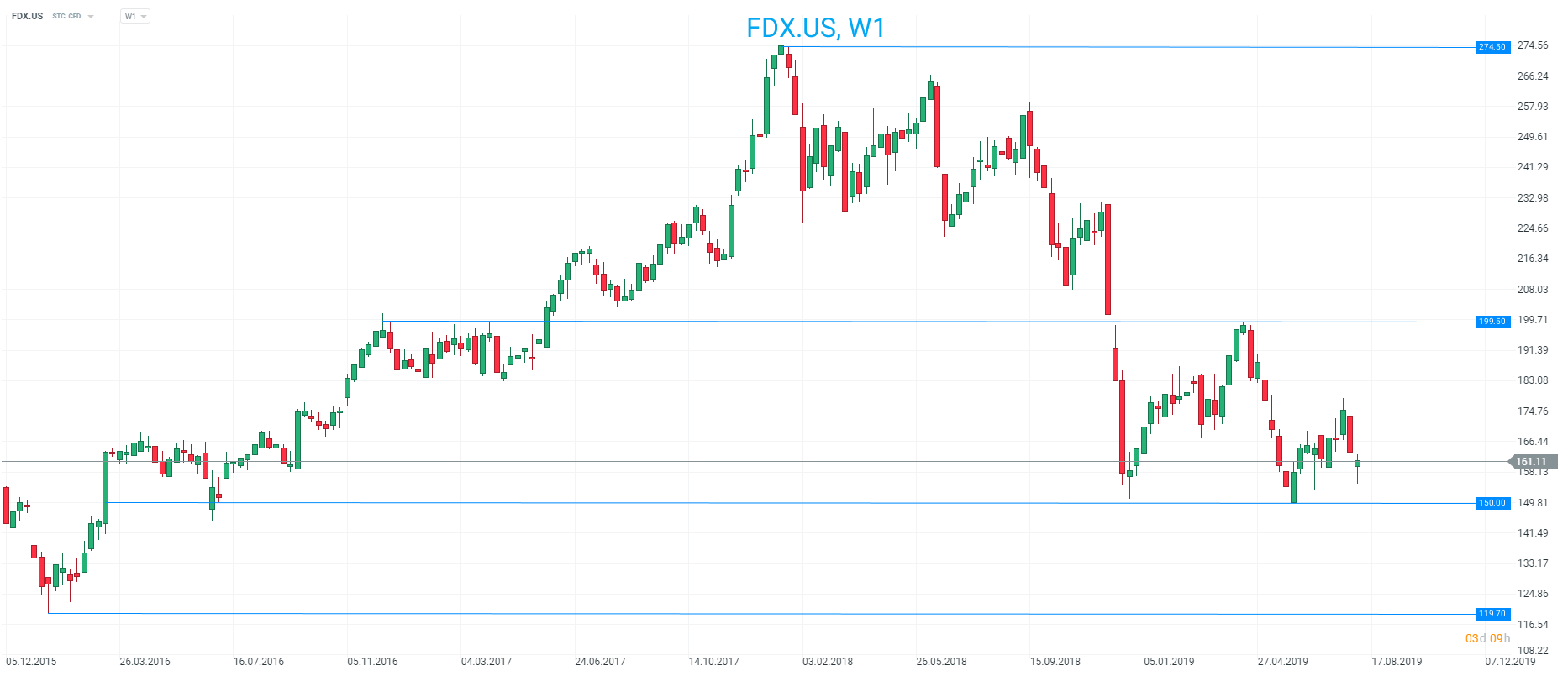 Después de alcanzar su punto máximo a principios del año pasado, las acciones de Fedex han tenido una tendencia a la baja. Una ruptura por debajo de 150 abriría la posibilidad de nuevas caídas. Fuente: xStation