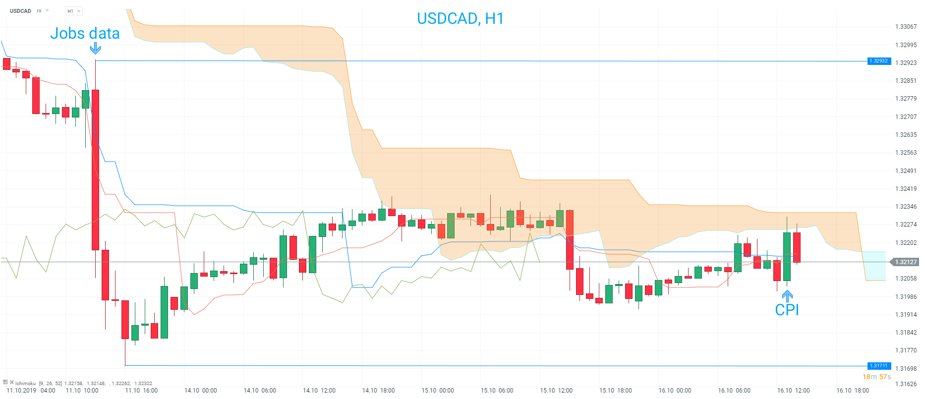 El USDCAD ganó después de los lanzamientos de los datos, pero no pudo superar la nube H1 que reside alrededor de 1.3235. Esta es una posible región de resistencia para mirar hacia adelante. Fuente: xStation