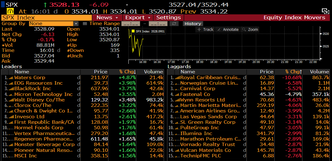 Principales cambios del S&P 500 a las 3:01 p.m. BST. Fuente: Bloomberg
