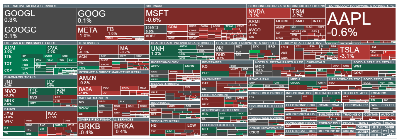 Acciones del índice S&P500 clasificadas por participación de capitalización de mercado. Fuente: xStation5