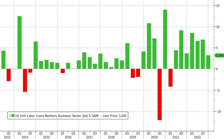 Los costes laborales unitarios respaldan el caso de más subidas de tipos. Fuente: Bloomberg