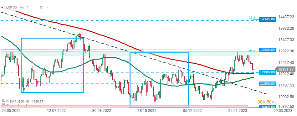 El US100 cayó más del 2,0% el martes y se está moviendo hacia el soporte clave en 12.000 pts, que coincide con la media simple de 200 (línea roja). Mientras el precio se mantenga por encima del soporte antes mencionado, se puede lanzar otro movimiento alcista hacia la zona de resistencia clave alrededor de 13.000 pts, lo que coincide con un retroceso de Fibonacci del 38,2% de la ola alcista lanzada en marzo de 2020. Por otro lado, teniendo en cuenta el sentimiento negativo que prevalece en los mercados, no se puede descartar otro movimiento a la baja. En este caso, el soporte principal se ubica alrededor de los 11.500 pts. Fuente: xStation5
