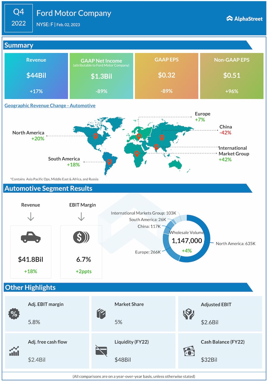 Las acciones de Ford (F.US) cayeron más de un 8,0% antes de la comercialización después de que el icónico fabricante de automóviles publicara ganancias ajustadas por acción de 51 centavos sobre $41,800 millones en ingresos, mientras que los analistas esperaban ganancias ajustadas por acción de 62 centavos y $40,370 millones en ingresos. Los ingresos netos fueron más de $ 1 mil millones más bajos en comparación con el año pasado.