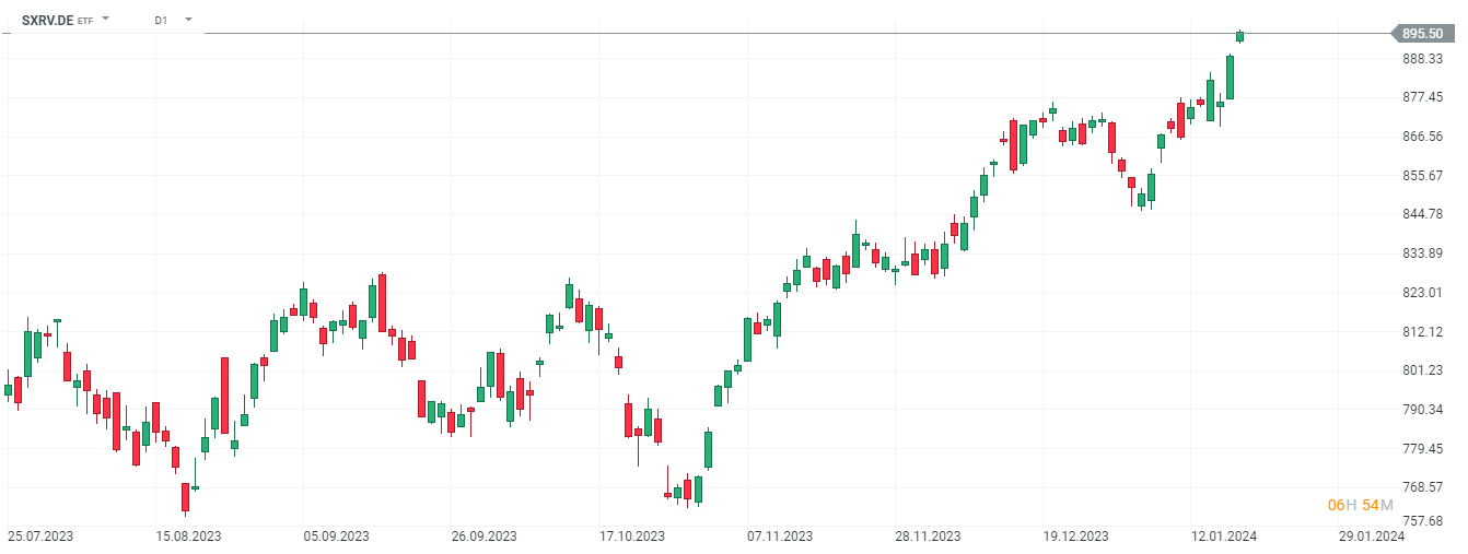 Un ejemplo de ETF del Nasdaq lo tenemos en el SXRV.DE y que os mostramos en el siguiente gráfico.