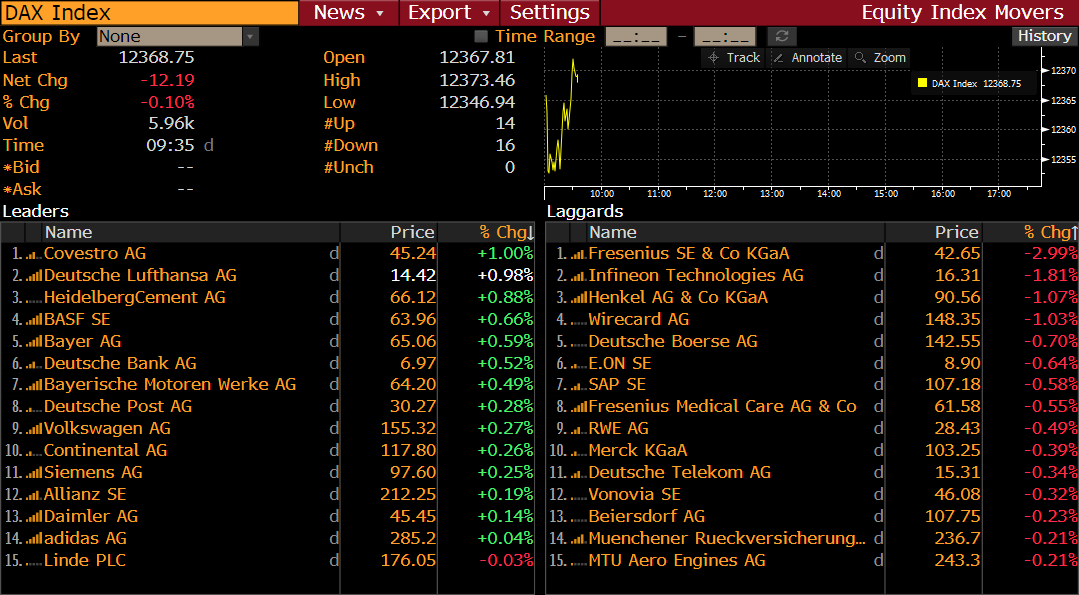 La incertidumbre sobre el estado de las relaciones comerciales entre China y los Estados Unidos ejerce presión sobre acciones como Infineon (IFX.DE). Fuente: Bloomberg