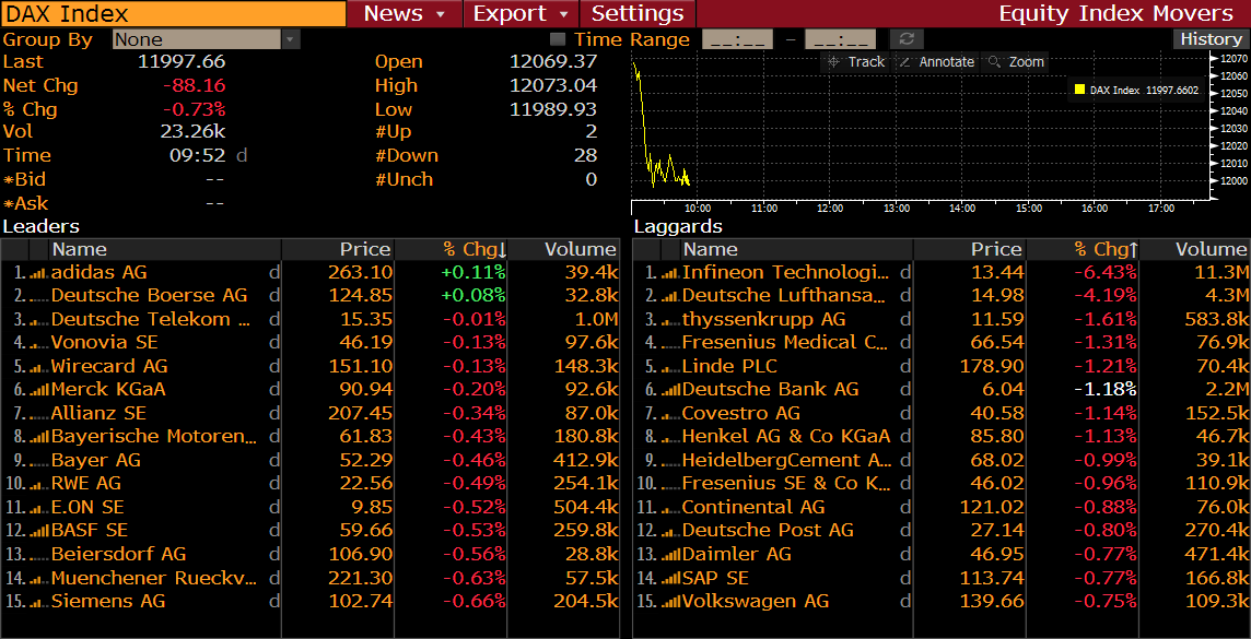 DAX (DE30) se hundió y probó el soporte de 12000 pts.