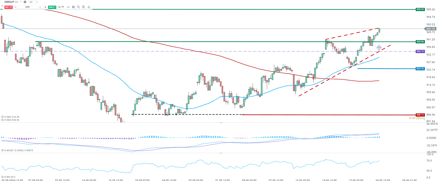 El tipo de cambio durante la jornada podría continuar al alza mientras el metal rojo se debilita. Hoy el dólar en Chile podría continuar con sus alzas y llegar al techo de los $949. Si vemos debilidad en el dólar internacional durante la jornada, el tipo de cambio podría caer hasta el pivote de los $940.
