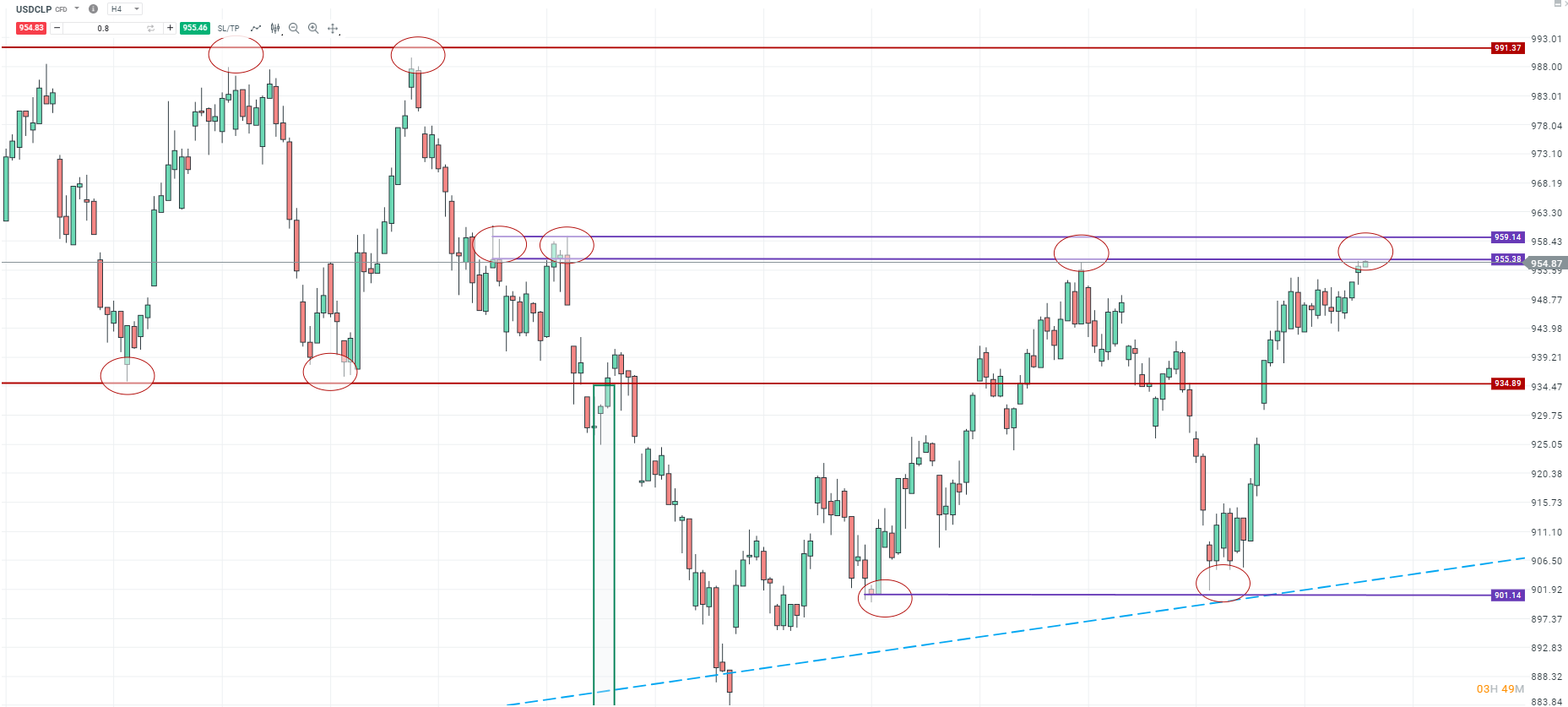 Tanto la brutal caída del cobre como las alzas en el dólar internacional están presionando el tipo de cambio en Chile al alza. La jornada abrió por encima de los $952, y esta semana se espera una decisión de política monetaria en Chile, donde se anticipa un nuevo recorte en los tipos de interés. Esto podría depreciar aún más el peso chileno frente al dólar norteamericano.