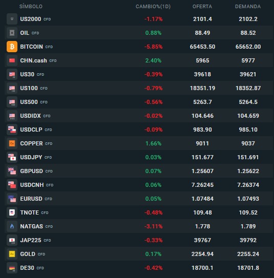 Índices bursátiles de Estados unidos cotizan con caídas producto de datos que apuntan a que la economía estadounidense continua estando sólida, lo que no daría prisa a la reserva federal para iniciar con los recorte de tasas de interés. El mercado espera la encuesta JOLTS de oferta de empleo hoy y los datos de nóminas no agrícolas para el viernes. Por el lado local, hoy se dará a conocer la decisión de tasas del Banco Central de Chile, en la cual las apuestas del mercado apuntan a un recorte de 75 puntos base.