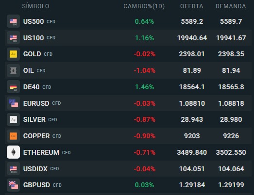 "Este informe se proporciona sólo con fines de información general y con fines educativos. Cualquier opinión, análisis, precio u otro contenido no constituyen asesoramiento de inversión o recomendación en entendimiento de la ley de Belice. El rendimiento en el pasado no indica necesariamente los resultados futuros, y cualquier persona que actúe sobre esta información lo hace bajo su propio riesgo. XTB no aceptará responsabilidad por ninguna pérdida o daño, incluida, sin limitación, cualquier pérdida de beneficio, que pueda surgir directa o indirectamente del uso o la confianza de dicha información. Los contratos por diferencias (""CFDs"") son productos con apalancamiento y acarrean un alto nivel de riesgo. Asegúrese de comprender los riesgos asociados. "