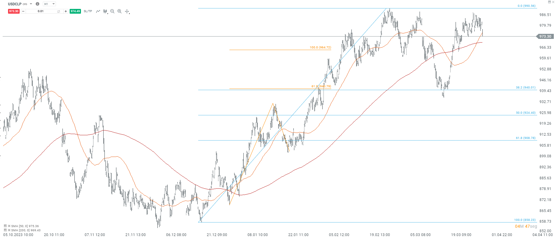 El tipo de cambio abrio a la baja en el inicio de la sesion en el dia de hoy lunes 01 de abril, luego de que se publicara el IMACEC el cual mostro una alza que supero la prevision, ubicandose la actividad economica en 4.5% en la variacion porcentual. lo que impulso a la baja el tipo de cambio, sin embrago las SMA 200, 50 se ubican bajo el precio, lo que podria indicar que el indice esta entrando en lateralización.