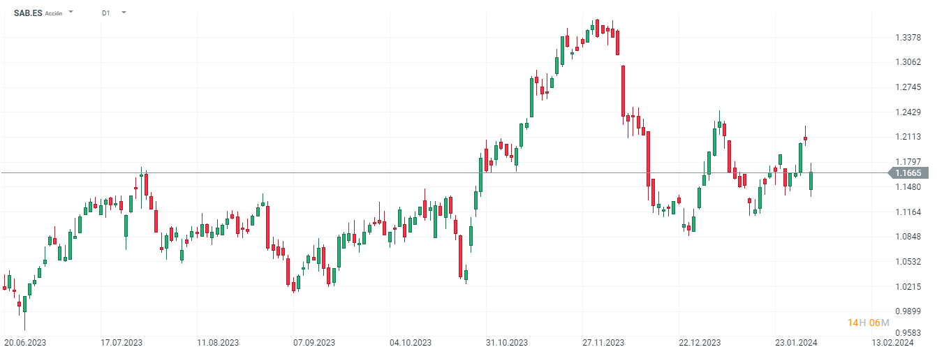 Las acciones de Sabadell suben algo más del 2% en este 2024.