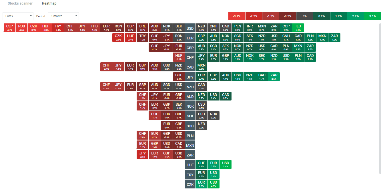 Cabe señalar que desde hace un mes los cruces con el franco suizo ya muestran signos de una clara depreciación del CHF. Fuente: xStation.