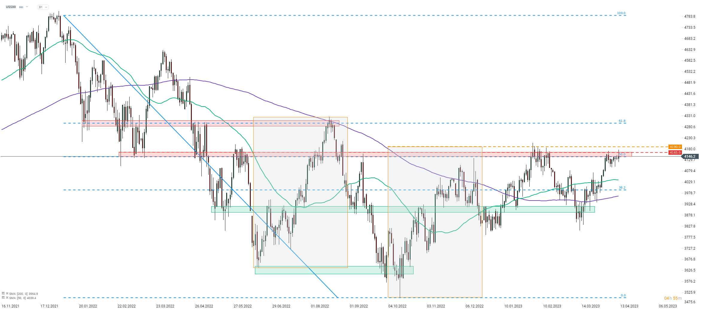 US500 apenas vio alguna reacción a los comentarios de Barkin o Daly. El índice borró las ganancias posteriores al IPC, ya que fracasó su intento de superar la zona de resistencia que oscila entre el 50% del retroceso y la marca de 4.165 puntos. Origen: xStation5
