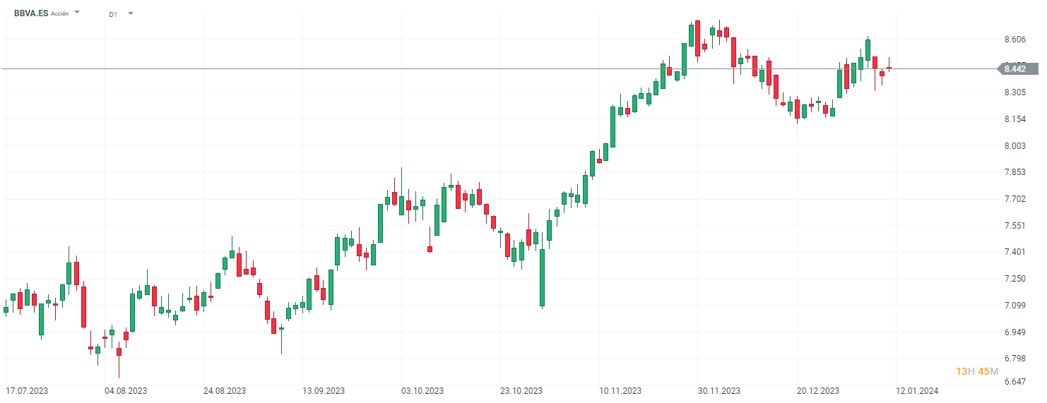 Las acciones de BBVA suben un 1% hoy después de que ayer fuera un día complicado para la banca tras las declaraciones de Luis de Guindos y las dudas entre los inversores sobre su desempeño este 2024.