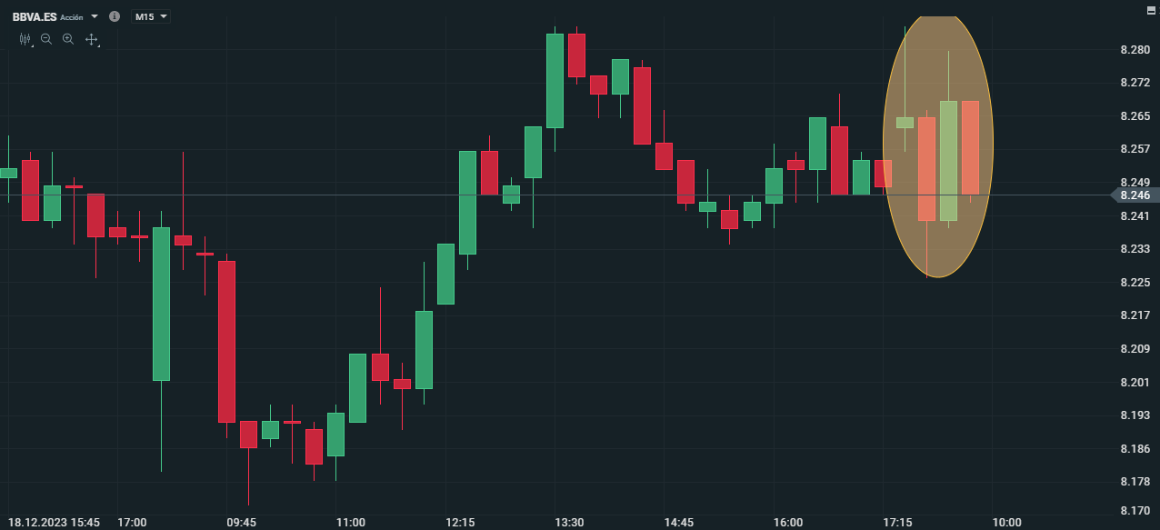 Gráfica de BBVA con velas de 15 minutos
