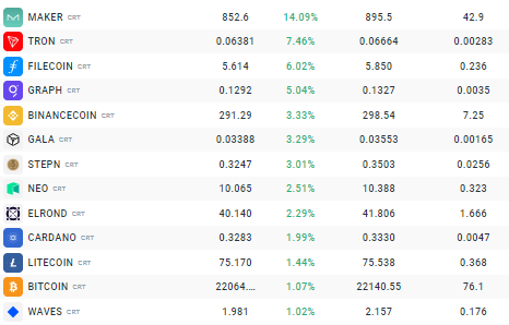 La lista de proyectos que se recuperaron más fuerte incluye Filecoin, Graph y Tron. Fuente: xStation5