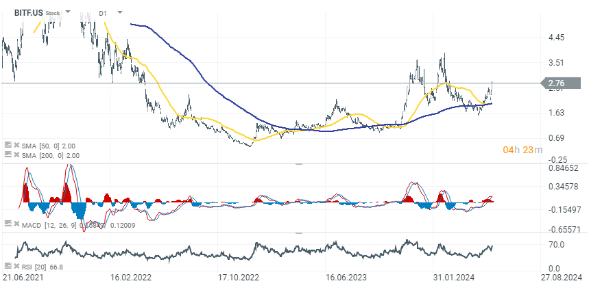 Bitfarms sube más del 13,00% a pesar del sentimiento negativo en el mercado de criptomonedas en general y las caídas en la mayoría de las empresas relacionadas con criptomonedas. El aumento se produce tras renovados intentos de adquisición por parte de Riot Platforms.