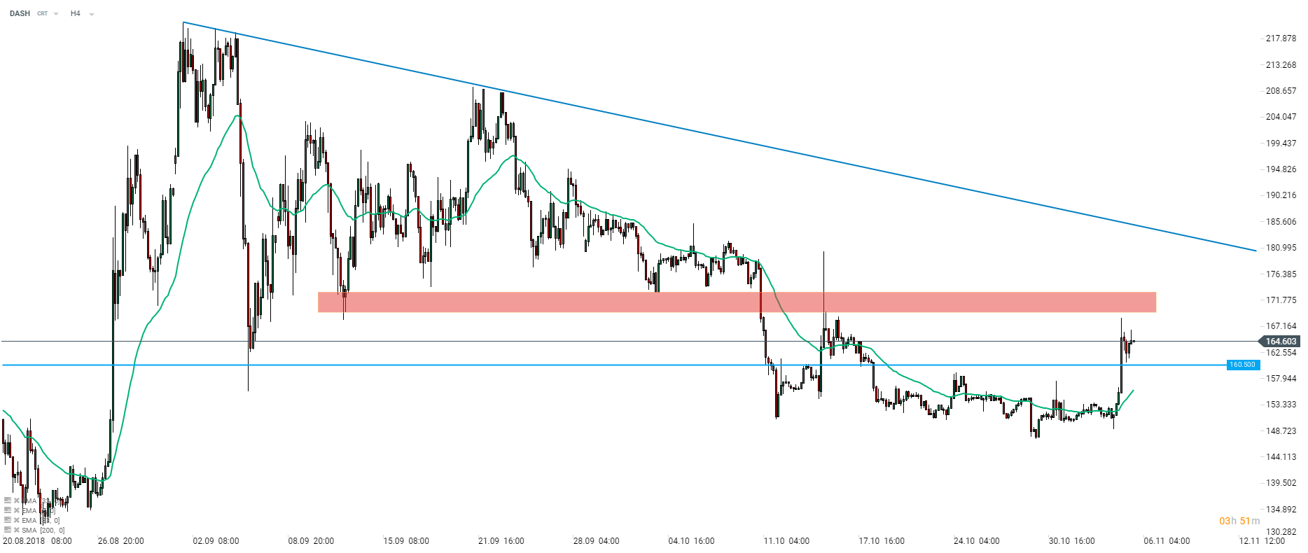 El DASH se desmarca del resto de criptomonedas en la sesión de hoy al revertir prácticamente todas sus caídas de la sesión anterior. En suma, es uno de los mejores activos del mercado en la sesión actual y podría poner a prueba la zona de resistencia por encima de los 170 USD próximamente.