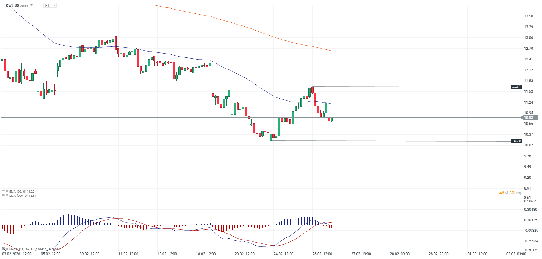 Las acciones de Blue Owl (OWL.US) caen 5,39% al inicio de la sesión en la Bolsa de Nueva York. En lo que va del año, el papel acumula una caída de 29%, reflejando el deterioro del sentimiento inversor.