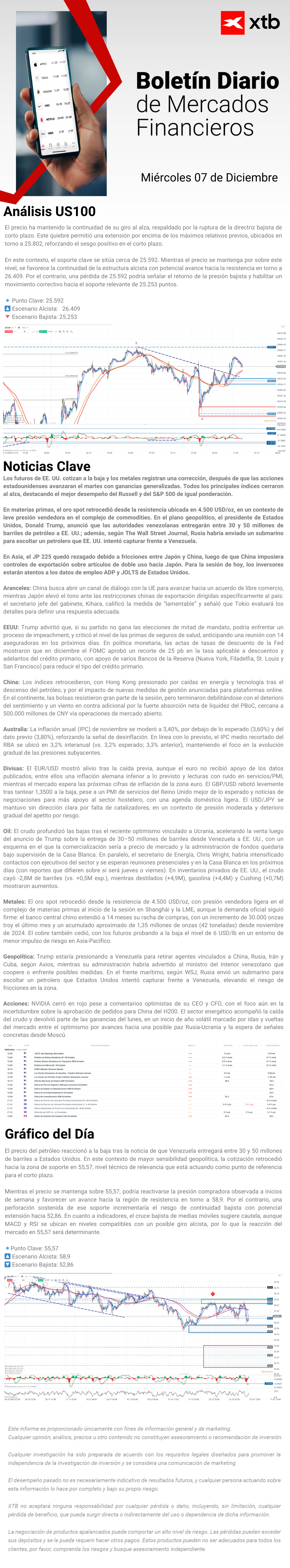 "Este informe se proporciona sólo con fines de información general y con fines educativos. Cualquier opinión, análisis, precio u otro contenido no constituyen asesoramiento de inversión o recomendación en entendimiento de la ley de Belice. El rendimiento en el pasado no indica necesariamente los resultados futuros, y cualquier persona que actúe sobre esta información lo hace bajo su propio riesgo. XTB no aceptará responsabilidad por ninguna pérdida o daño, incluida, sin limitación, cualquier pérdida de beneficio, que pueda surgir directa o indirectamente del uso o la confianza de dicha información. Los contratos por diferencias (""CFDs"") son productos con apalancamiento y acarrean un alto nivel de riesgo. Asegúrese de comprender los riesgos asociados. "