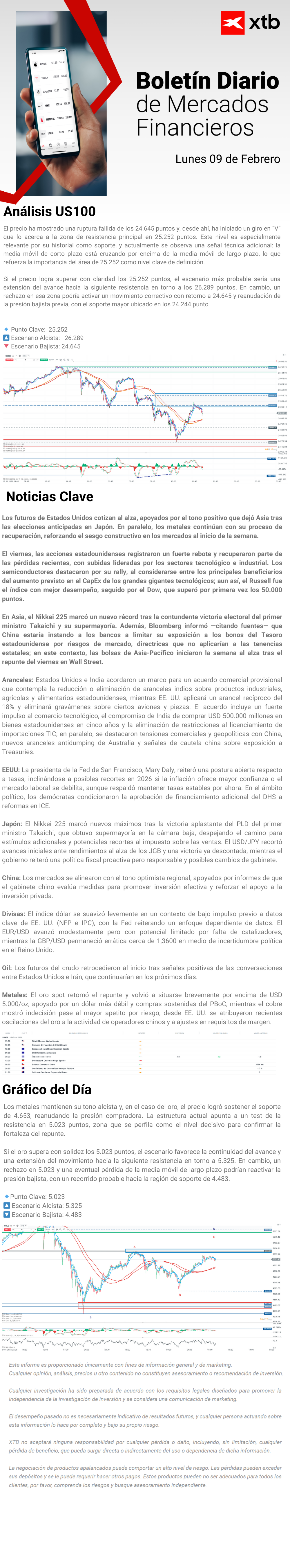 • Análisis técnico del día para el principal activo: Revisión detallada del comportamiento técnico del instrumento más relevante del día, con niveles clave de soporte y resistencia.