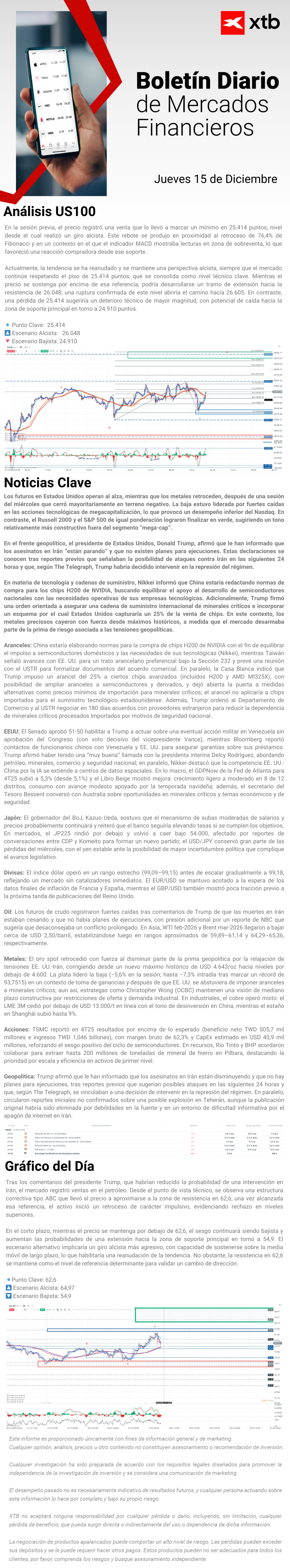 "Este informe se proporciona sólo con fines de información general y con fines educativos. Cualquier opinión, análisis, precio u otro contenido no constituyen asesoramiento de inversión o recomendación en entendimiento de la ley de Belice. El rendimiento en el pasado no indica necesariamente los resultados futuros, y cualquier persona que actúe sobre esta información lo hace bajo su propio riesgo. XTB no aceptará responsabilidad por ninguna pérdida o daño, incluida, sin limitación, cualquier pérdida de beneficio, que pueda surgir directa o indirectamente del uso o la confianza de dicha información. Los contratos por diferencias (""CFDs"") son productos con apalancamiento y acarrean un alto nivel de riesgo. Asegúrese de comprender los riesgos asociados. "