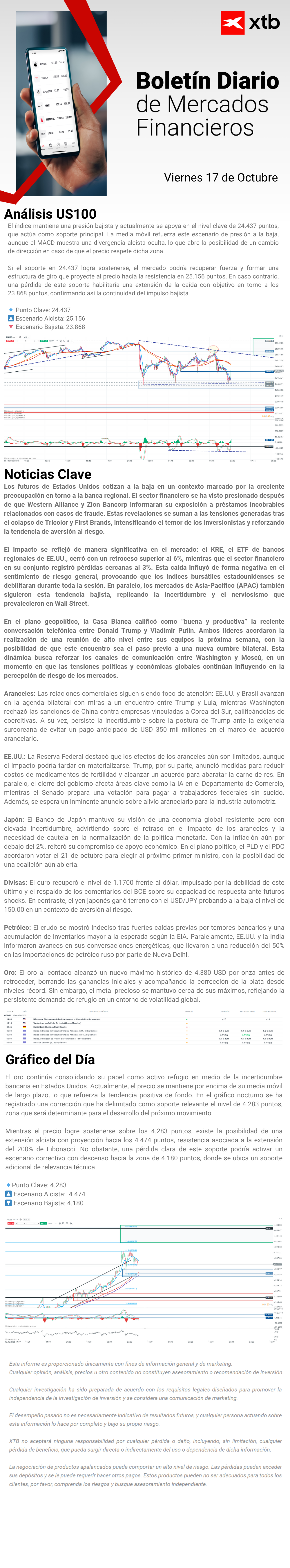 "Este informe se proporciona sólo con fines de información general y con fines educativos. Cualquier opinión, análisis, precio u otro contenido no constituyen asesoramiento de inversión o recomendación en entendimiento de la ley de Belice. El rendimiento en el pasado no indica necesariamente los resultados futuros, y cualquier persona que actúe sobre esta información lo hace bajo su propio riesgo. XTB no aceptará responsabilidad por ninguna pérdida o daño, incluida, sin limitación, cualquier pérdida de beneficio, que pueda surgir directa o indirectamente del uso o la confianza de dicha información. Los contratos por diferencias (""CFDs"") son productos con apalancamiento y acarrean un alto nivel de riesgo. Asegúrese de comprender los riesgos asociados. "