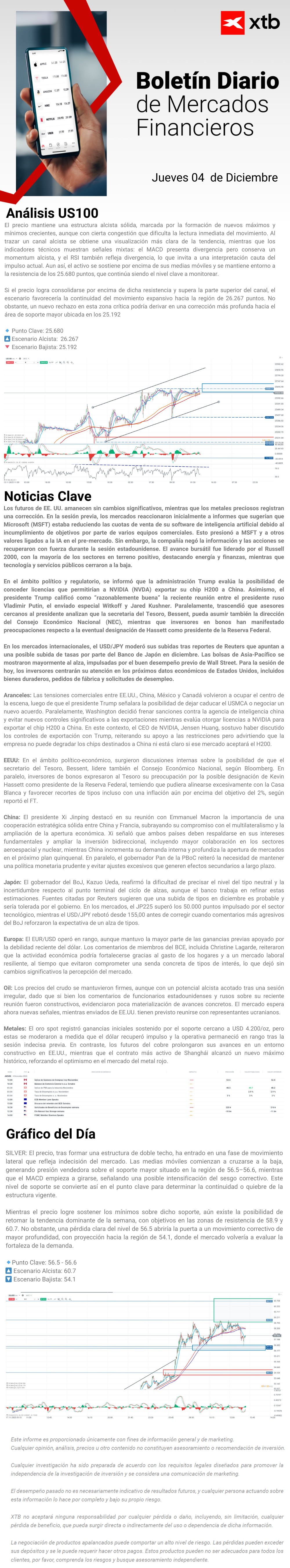- Análisis técnico para el commodity del día: Evaluación técnica del commodity destacado, identificando tendencias, patrones y posibles escenarios de corto plazo.