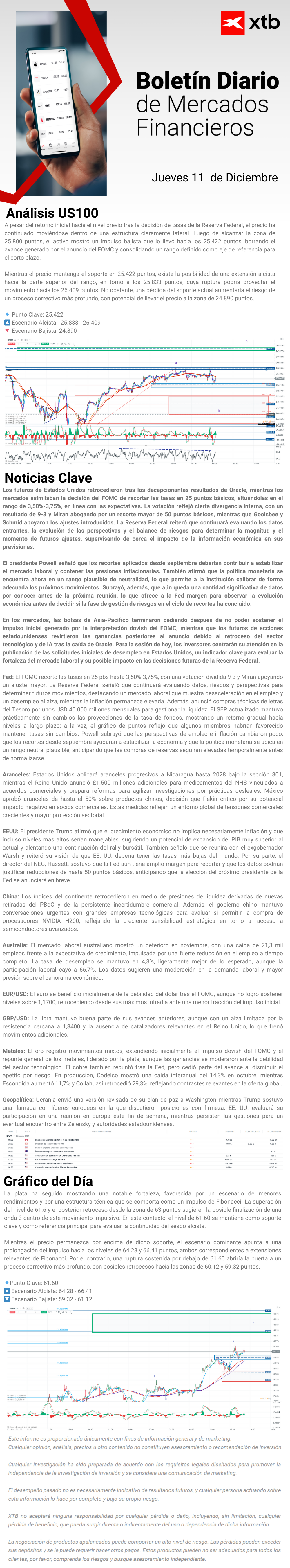 - Análisis técnico del día para el principal activo: Revisión detallada del comportamiento técnico del instrumento más relevante del día, con niveles clave de soporte y resistencia.