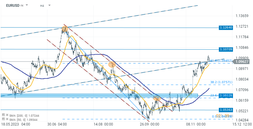 El Eurodólar retrocede a niveles anteriores a la ruptura de ayer por encima de 1,10. Sin embargo, el tipo de cambio aún se mantiene por encima del retroceso de Fibonacci del 61,8% del último movimiento bajista. Mantener los niveles actuales es crucial para la continuación de un mayor movimiento ascendente. Fuente: xStation 5
