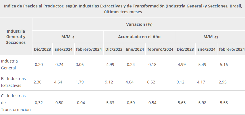 La variación acumulada anual hasta febrero fue de -0.18%, la más baja registrada para un mes de febrero desde el inicio de la serie histórica en 2014. La disminución de los precios en sectores clave como refinación de petróleo y biocombustibles, junto con otras actividades industriales, sugiere un entorno desafiante para la producción nacional.