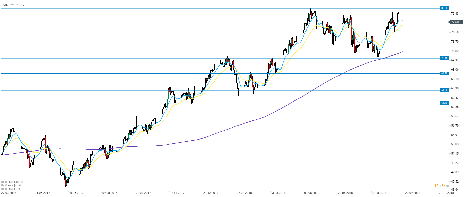 9:40 pm BST - Inventarios semanales de petróleo API. Mientras que el petróleo WTI todavía opera a cierta distancia de sus máximos de este año, el Brent logró de nuevo validar los 80$. Sin embargo los alcista no lograron mantener las ganancias de nuevo, y a cambio vimos un descenso por debajo de los 78$. La geopolítica aún domina este mercado (exportaciones iranís) pero los datos de inventarios podrían incrementar la volatilidad a corto plazo. Se espera que la lectura API de hoy muestre un incremento de 1.3 mb en las reservas de petróleo.