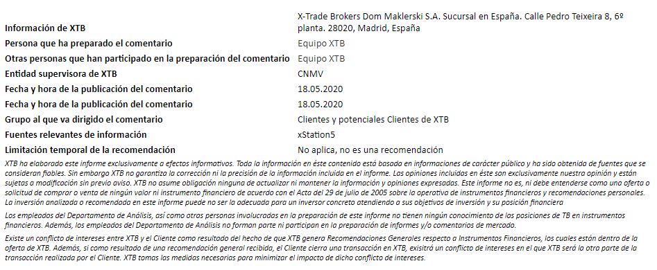 "Este informe se proporciona sólo con fines de información general y con fines educativos. Cualquier opinión, análisis, precio u otro contenido no constituyen asesoramiento de inversión o recomendación en entendimiento de la ley de Belice. El rendimiento en el pasado no indica necesariamente los resultados futuros, y cualquier persona que actúe sobre esta información lo hace bajo su propio riesgo. XTB no aceptará responsabilidad por ninguna pérdida o daño, incluida, sin limitación, cualquier pérdida de beneficio, que pueda surgir directa o indirectamente del uso o la confianza de dicha información. Los contratos por diferencias (""CFDs"") son productos con apalancamiento y acarrean un alto nivel de riesgo. Asegúrese de comprender los riesgos asociados. "