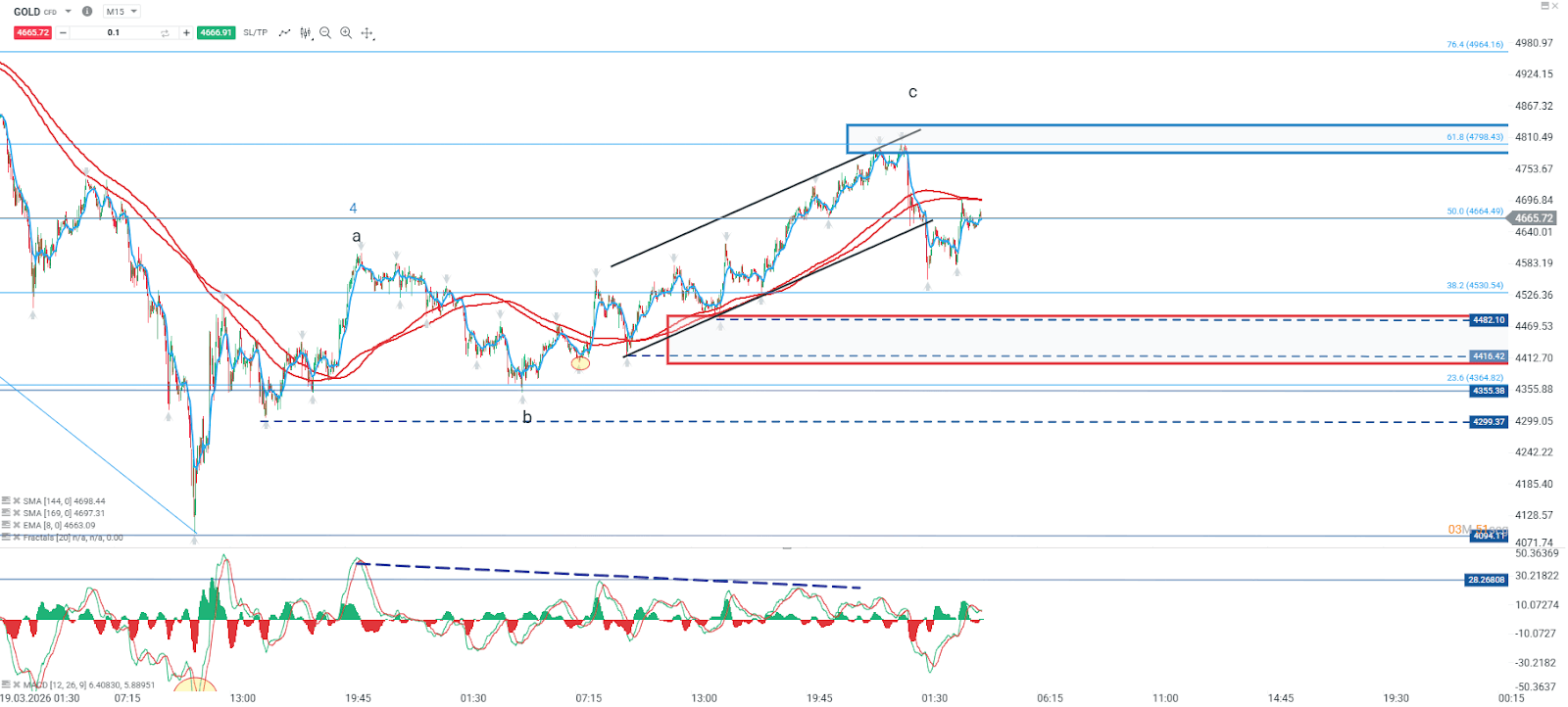 No obstante, en caso de que el precio logre recuperar impulso y genere un nuevo máximo por encima de los 4.798, se abriría un escenario de extensión alcista dentro del movimiento correctivo, con la siguiente resistencia de relevancia ubicada en los 4.964, correspondiente al retroceso del 76,4% de Fibonacci. A nivel de indicadores, el MACD muestra una pérdida de momento con una tendencia descendente, lo que por el momento respalda el escenario de mayor debilidad en el corto plazo.