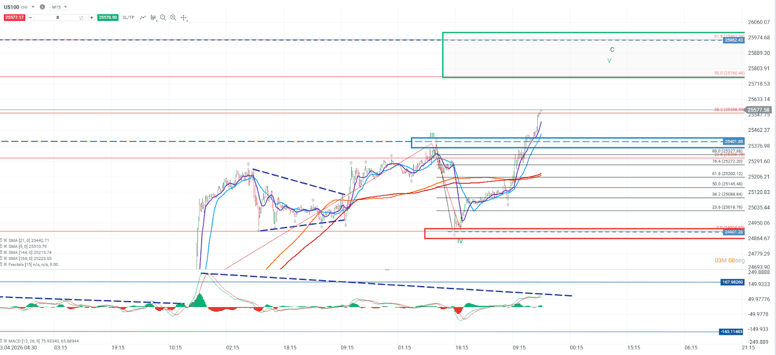 En el corto plazo, la zona de los 25.401 puntos se mantiene como nivel clave. Una consolidación sostenida sobre este umbral podría habilitar una extensión hacia los 25.360 puntos, correspondiente al 50% de extensión de Fibonacci. Por el contrario, la pérdida de este soporte abriría un escenario correctivo de mayor amplitud, hacia la zona de los 24.901 puntos como soporte relevante.