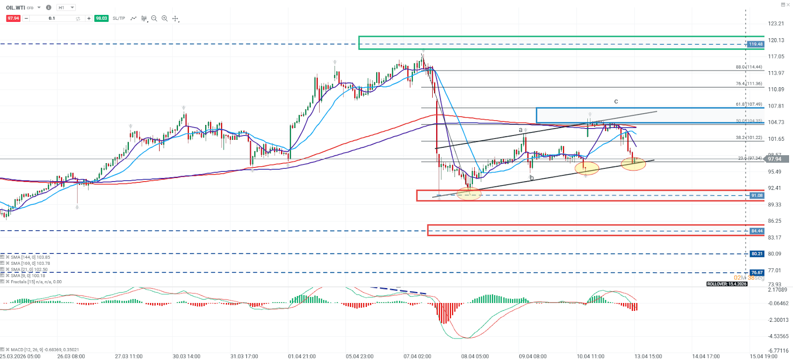 Mientras el precio respete esta estructura, podría intentar nuevamente un movimiento al alza en dirección al retroceso de 61,8% de Fibonacci, ubicado en los 107,49. Sin embargo, una ruptura a la baja del canal abriría un escenario correctivo más amplio, dando paso a una continuidad del sesgo bajista previo, con un soporte relevante en la zona de los 91,08.