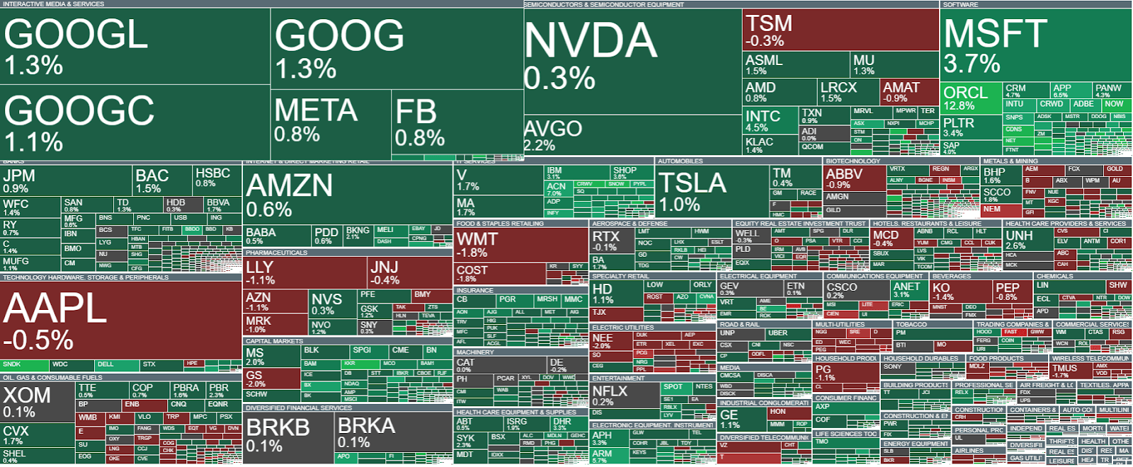 Acciones: En renta variable, Goldman Sachs presentó resultados del primer trimestre de 2026 superiores a lo esperado, con ingresos por 17.230 millones de dólares y un BPA de 17,55 dólares, ambos por encima del consenso y con sólidos avances interanuales. El desempeño estuvo impulsado por un récord en renta variable y una fuerte recuperación en comisiones de banca de inversión, aunque FICC mostró una caída frente al año anterior. También destacaron la fortaleza de Global Banking & Markets, el crecimiento en Asset & Wealth Management, un AUS récord de 3,65 billones de dólares y una rentabilidad elevada, con ROE de 19,8% y ROTE de 21,3%. En paralelo, Oracle ganó protagonismo en la sesión, con una suba del 11,04% en sus acciones tras anunciar mejoras relevantes en inteligencia artificial para su paquete de soluciones orientado al sector de servicios públicos, reforzando el buen tono del mercado hacia compañías vinculadas a infraestructura y aplicaciones de IA.