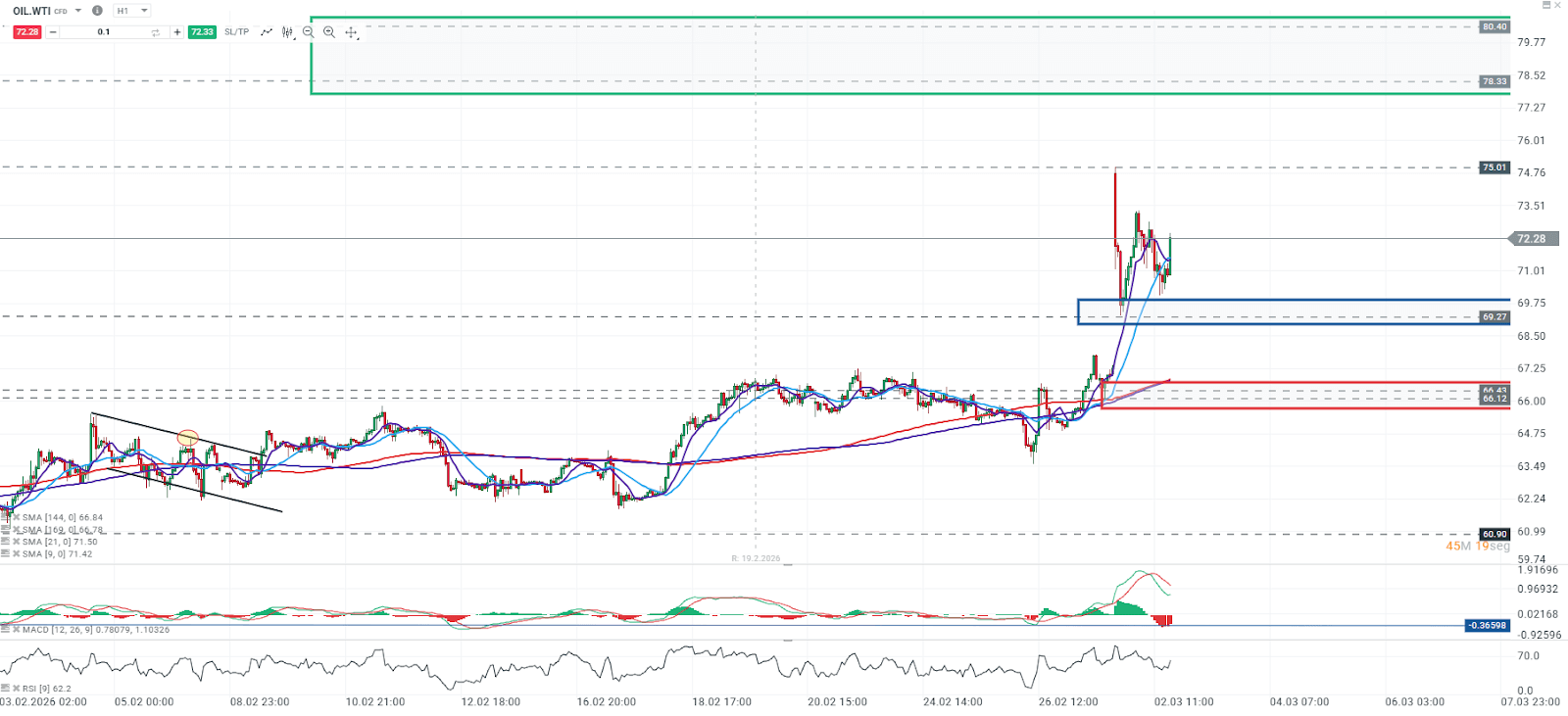 - El US100 mantiene estructura lateral cerca de resistencias técnicas, mientras el WTI conserva sesgo alcista sobre 69,27 USD, con el foco puesto en si la crisis energética prolonga el impulso del crudo.