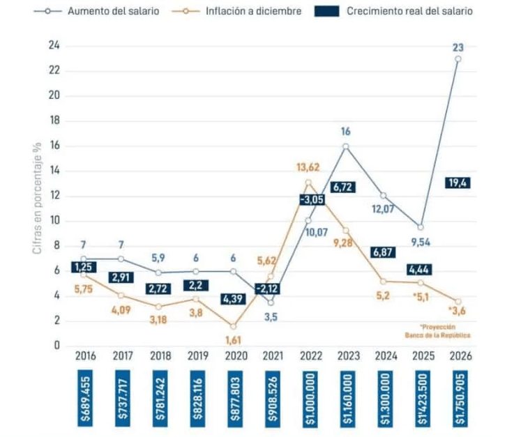 Con este ajuste, el salario base mensual incluyendo transporte aumentará a 2 millones de pesos en 2026 (aproximadamente 530 dólares). En su comunicación, el Gobierno planteó que el paquete apunta a reducir directamente la pobreza, en un contexto en que el mandato presidencial concluye en agosto.
