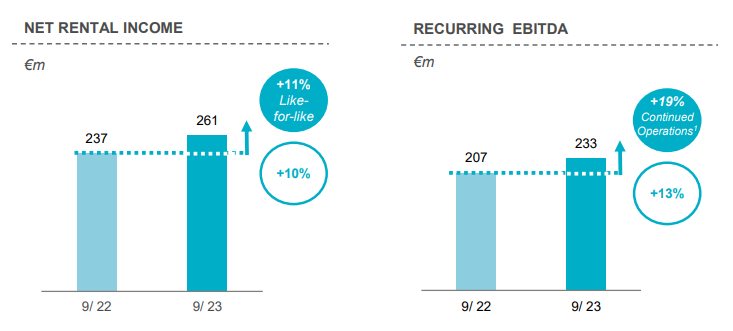Sin embargo, ¿Por qué cae hoy más de un 3% en los mercados? Por su cifra de beneficio neto. La compañía ha querido hacer hincapié en su beneficio recurrente, pero la realidad es que las desinversiones realizadas en el anterior trimestre y la caída en el valor de algunas de sus propiedades siguen teniendo un gran impacto en la cuenta de resultados. Las pérdidas acumuladas durante estos primeros nueve meses de 2023 son de casi 300 millones de euros, por lo que el mercado está castigando la acción. Aunque es cierto que esos 525 millones de ajuste negativo no suponen una salida de caja, si que afectan a su contabilidad.