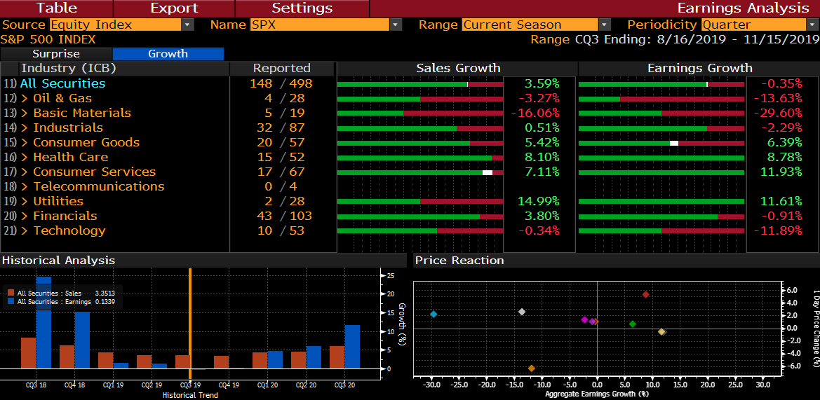 La temporada de resultados de Estados Unidos está en su apogeo, por lo tanto, puede ser conveniente echar un vistazo rápido a que hicieron las empresas en el tercer trimestre de 2019. Alrededor del 30% de las compañías del S&P 500 ya han publicado sus informes de resultados y emerge un patrón conocido. Muestran mayores ganancias e ingresos que los analistas de mercado habían estimado.