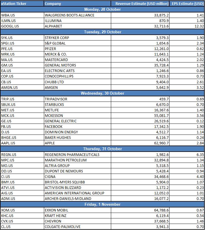 Cabe destacar que las compañías de S&P 500 reportan ganancias la próxima semana. Entre ellos se pueden encontrar 6 miembros de Dow Jones: Walgreens Boots Alliance, Pfizer, Merck & Co, Apple, Chevron y Exxon Mobil. Fuente: Bloomberg, XTB Research