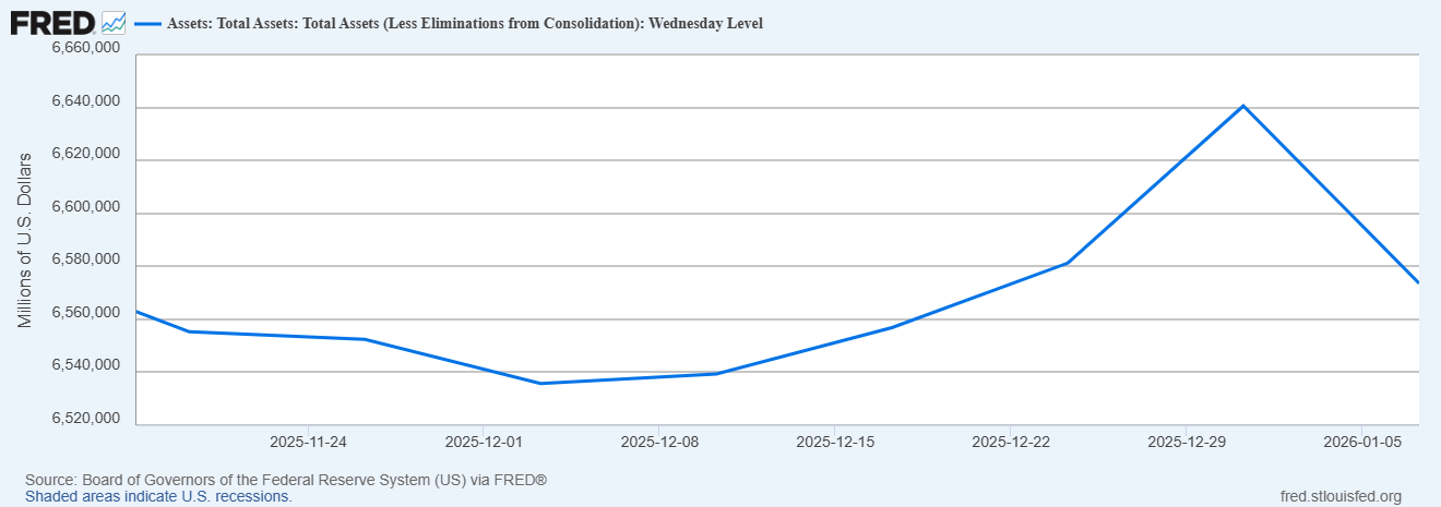 En esa lectura, el efecto se parecería a una política de compras de activos, donde apoyar el mercado hipotecario y contener costos de financiamiento sin que necesariamente la Fed esté recortando tasas en ese momento. Esto se vuelve más relevante considerando que el balance de la Fed habría empezado a aumentar tras poner fin al QT el 1 de diciembre de 2025, cambiando el telón de fondo de liquidez.