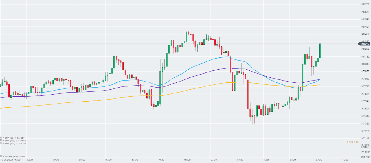El yen extiende sus caídas frente al dólar estadounidense en medio de los comentarios de Ueda. Fuente: xStation 5