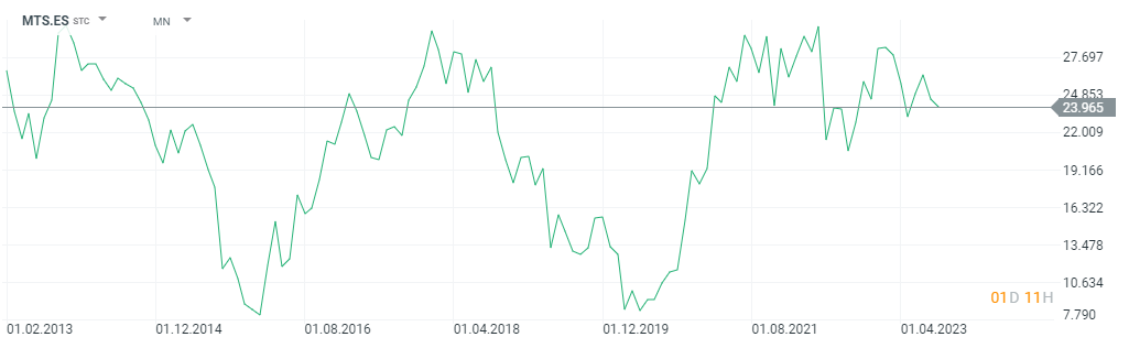 Arcelormittal (MTS.ES) es uno de los principales operadores de la industria siderúrgica, centrándose en el acero y el hierro y abarcando desde la minería hasta la comercialización. Sus productos se centran en el sector de la construcción, aunque también en el sector energético, transporte y automotriz. Es una compañía internacional, teniendo presencia en más de 20 países y teniendo empleados en más de 60 países.